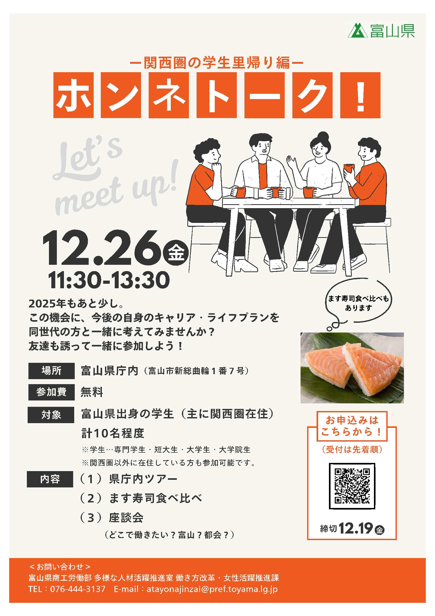 富山県庁おしごとトーク 12/17(水)分の申込受付中!