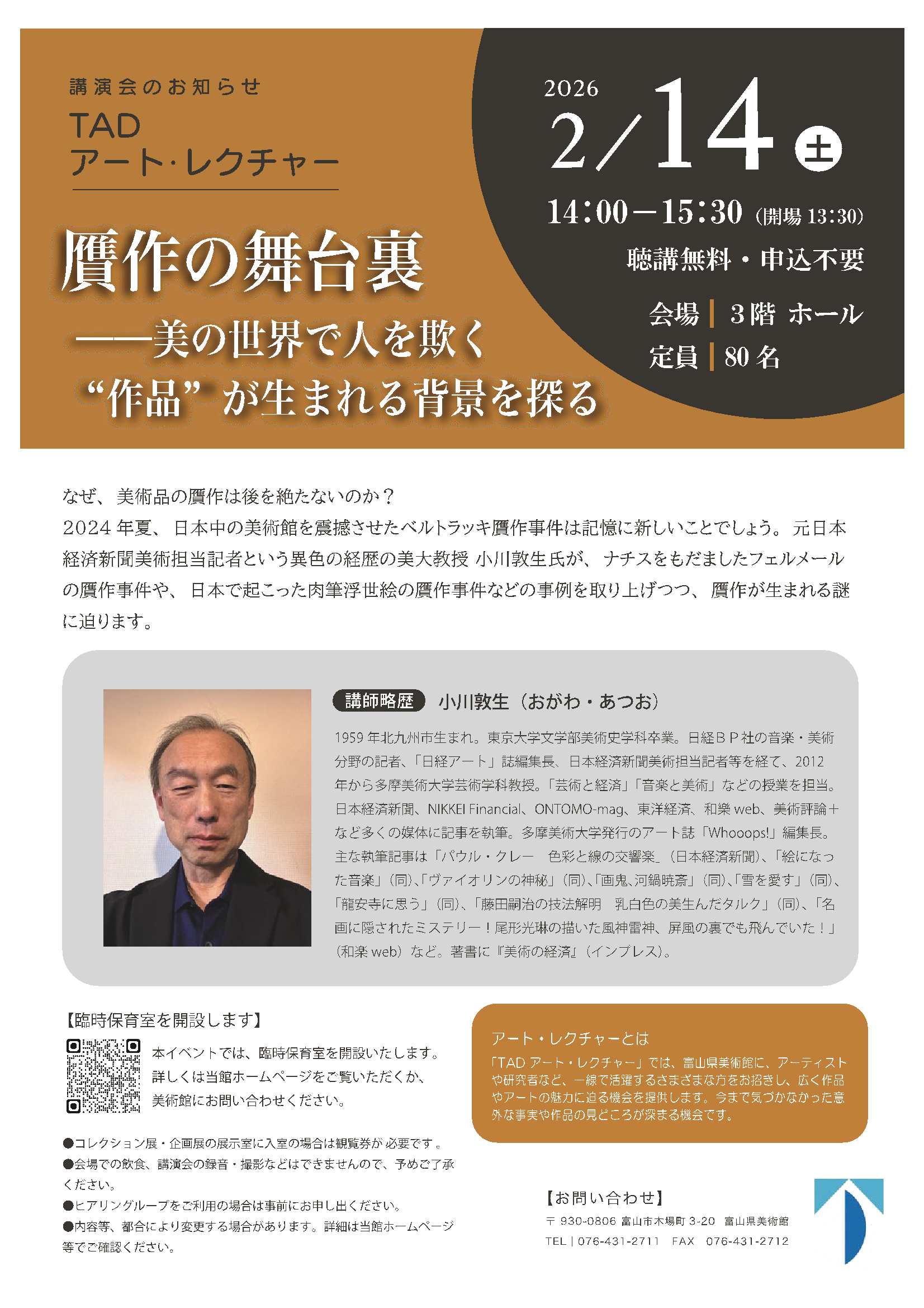 TADアートレクチャー 「贋作の舞台裏――美の世界で人を欺く“作品”が生まれる背景を探る」