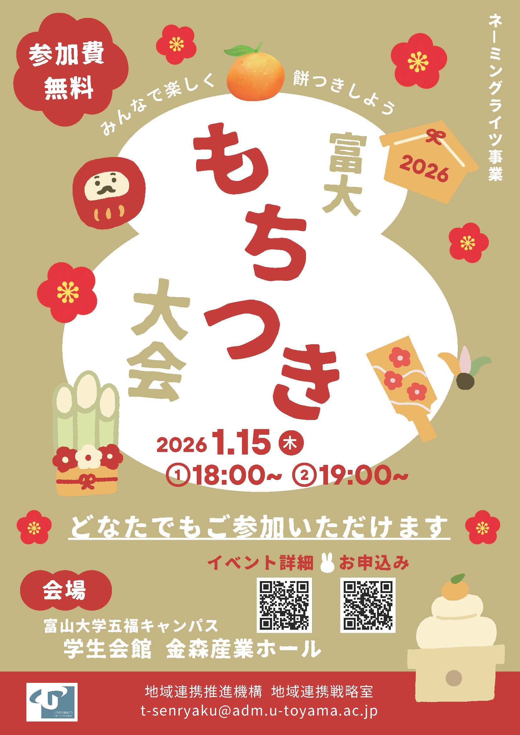 【富山大学】ネーミングライツ事業「富大もちつき大会」を開催します