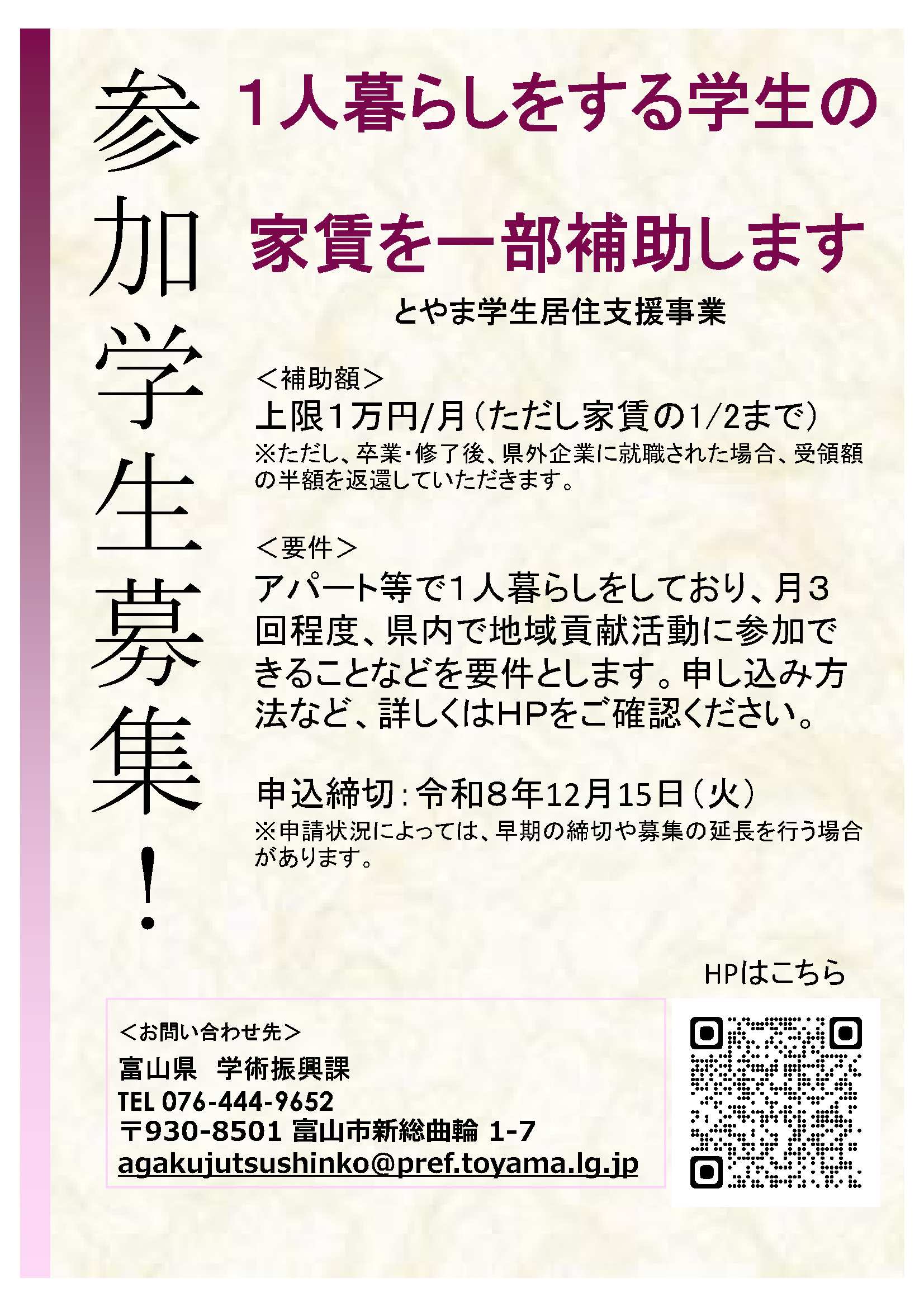 ホームページをリニューアルし、「富山県学生ポータルサイト」を追加しました。
