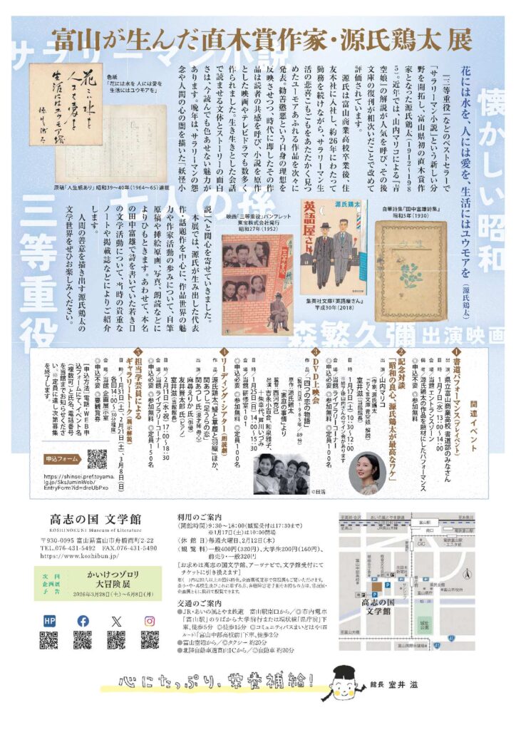 高志の国文学館企画展「富山が生んだ直木賞作家・源氏鶏太 展」