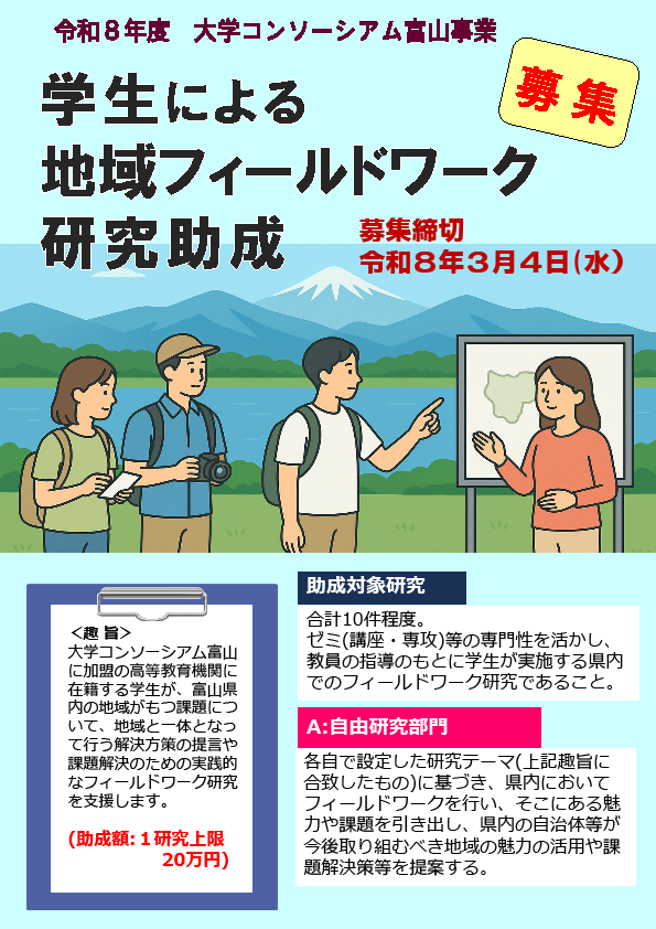 「令和8年度 学生による地域フィールドワーク研究助成」の募集を開始しました。(2025/12/23)