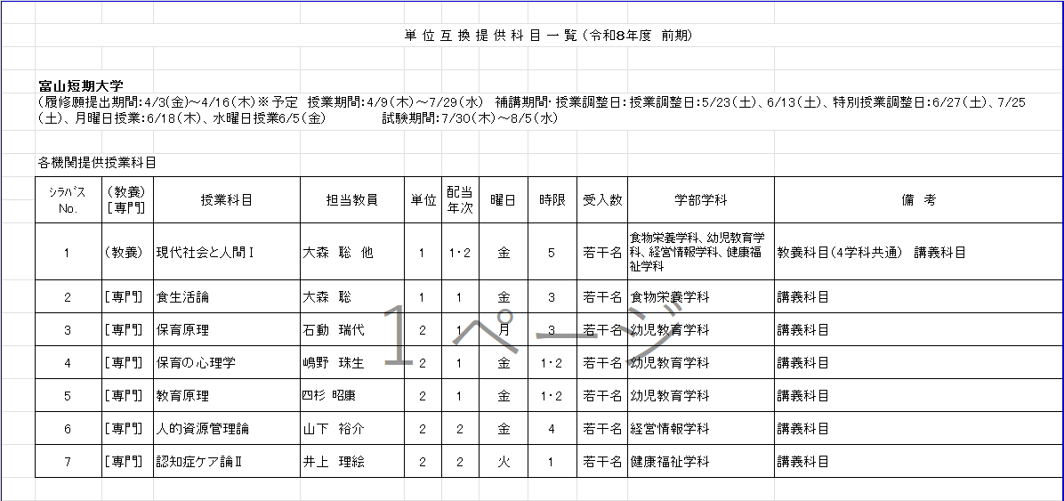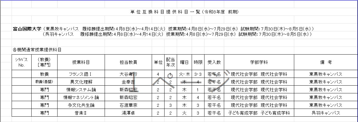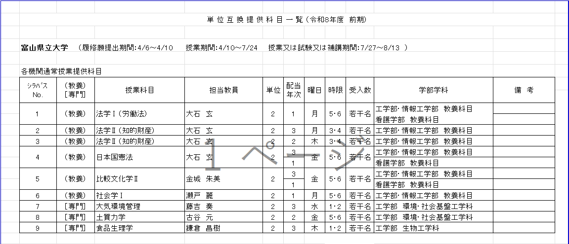 科目、シラバスはこちらの富山大学ウェブサイトで確認してください。